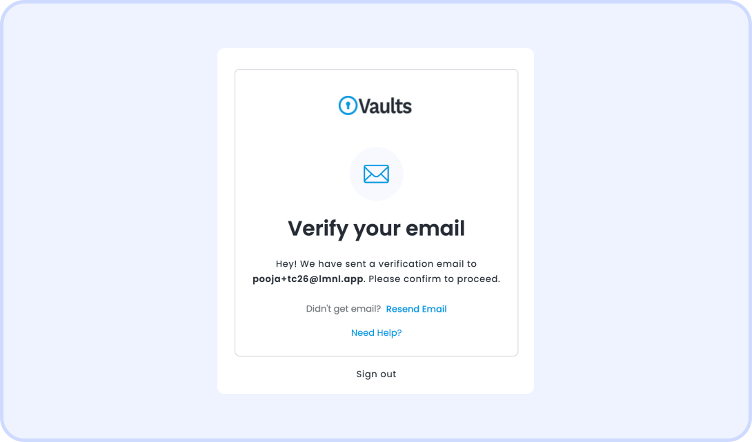 As an additional security measure, the organization's owner is directed to verify their email address. This verification process ensures the accuracy and legitimacy of the provided contact information, contributing to a more robust and reliable account setup.