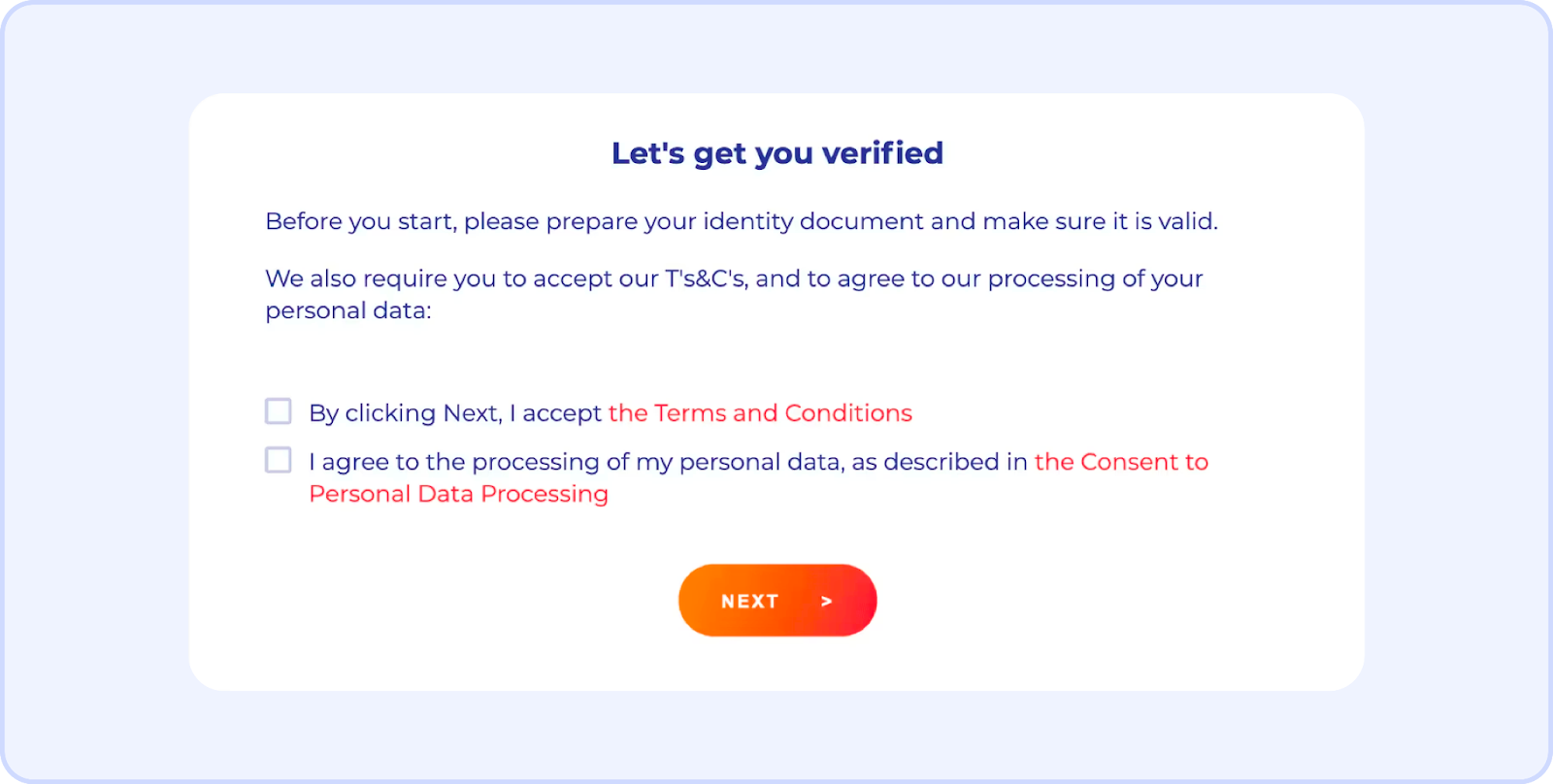 - Complete your Know Your Customer (KYC) Process by clicking on “Verify Now” and submitting the necessary information and documents for completing KYC.