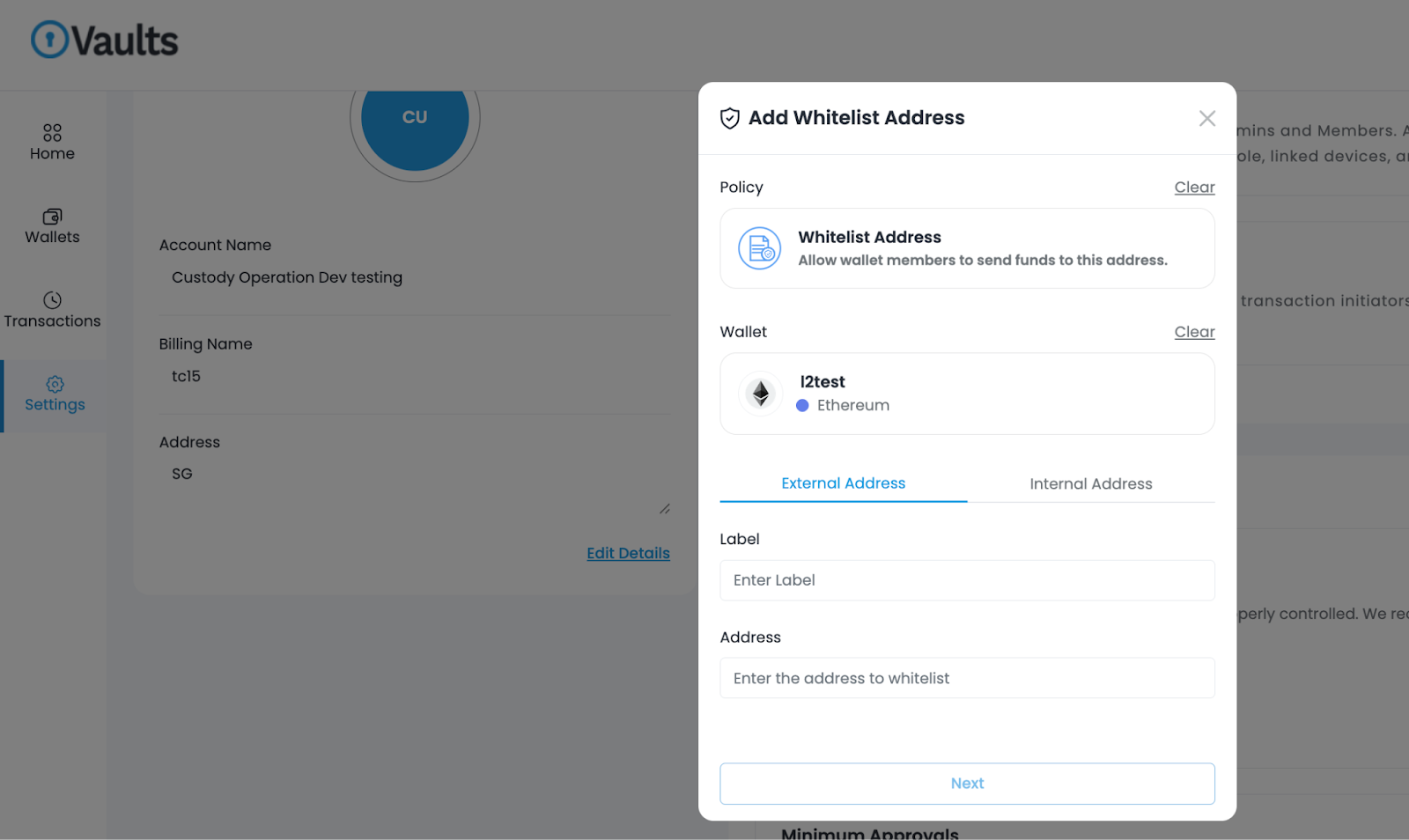 - Start by logging in to Liminal Vaults as the Owner/Admin.